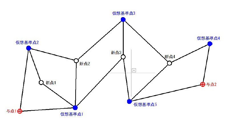 仮想基準点を設け、VRSにより新点を観測し、